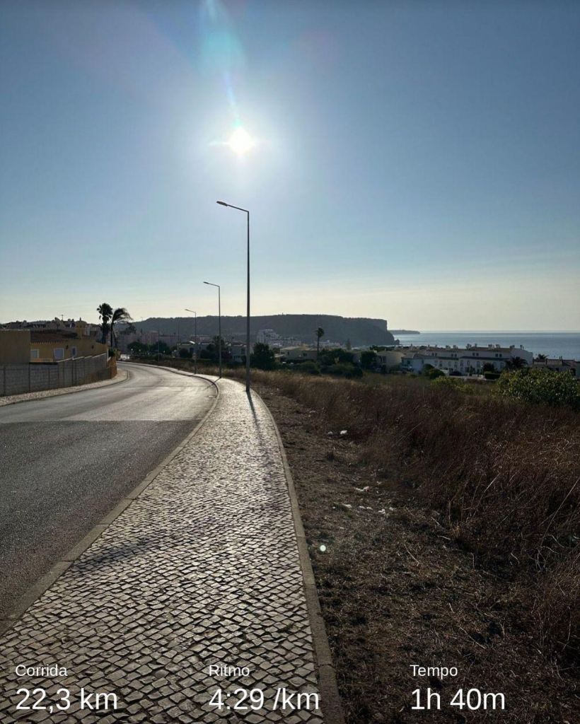 Ainda sobre o longo, já feito em terras Algarvias, consistiu em fazer 1h40 de corrida contínua. Optei por um ritmo mais conservador face ao da semana passada (21kms @ 4:15/km) já que a altimetria aqui é bem mais desfavorável. Ainda assim deu para fazer uma média final de 4:29/km (22.33Kms) com um acumulado de 263 metros! Satisfeito! Sempre gostei de fazer treinos com acumulado e por isso roteiros destes são sempre bem vindos!