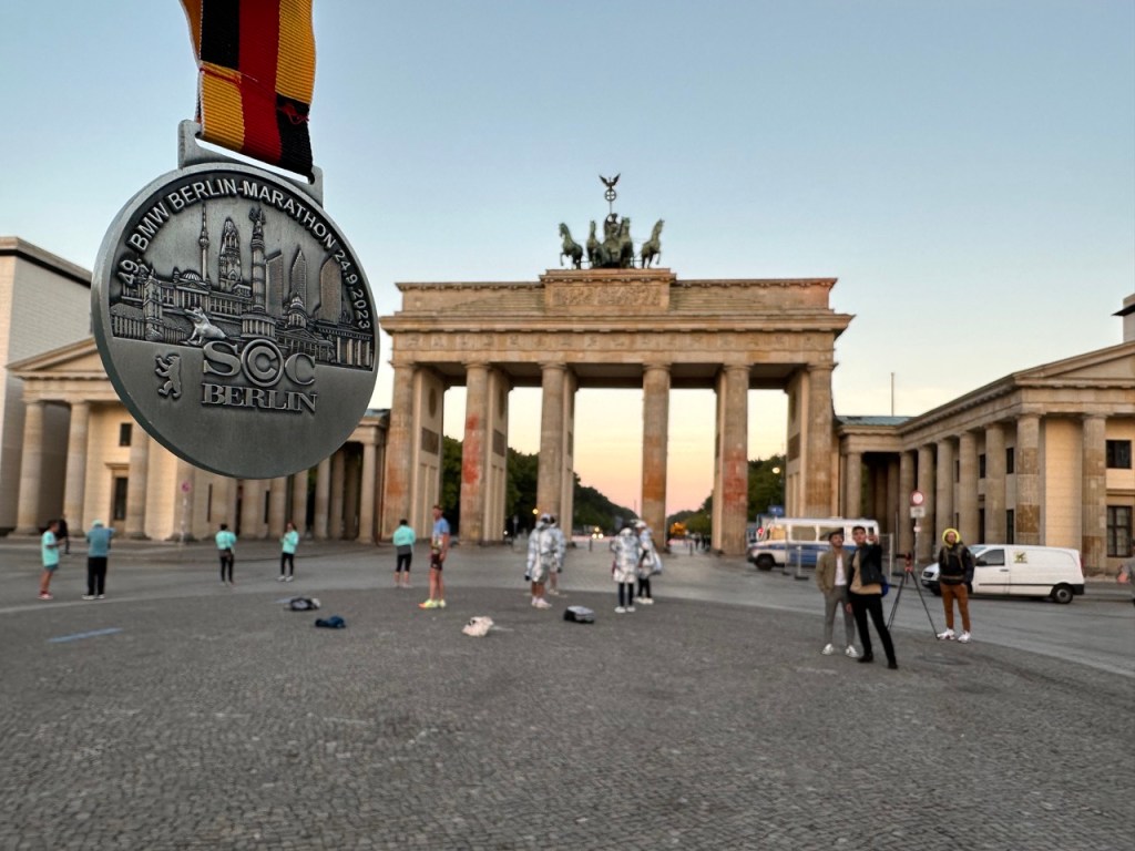 30 metros…20 metros….10 metros….E… A Meta. Depois de uma operação há precisamente 5 meses atrás e uma preparação muito atribulada com fascites e até uma micro-rotura num quadricipe (entre várias outras coisas) acabava de cruzar a meta em Berlim com um tempo final de 2 horas, 50 minutos e 52 segundos. Foi uma chegada extremamente emocional. O caminho percorrido até aquele momento tinha sido bastante complicado e várias vezes duvidei se sequer conseguiria começar a prova. Fazer uma melhoria de tempo assim era algo que me deixava muito incerto (durante o último mês estive bastante indeciso na estratégia que queria adoptar para a prova e, só mesmo na terça-feira anterior, é que acabei por definir algo mais concreto!) e conseguir fazê-lo foi uma satisfação inexplicável. Todos os momentos bons e maus, todos os sacrifícios feitos, culminavam ali e em retrospectiva, é agora muito fácil dizer que tudo valeu a pena e que repetiria tudo outra vez!
