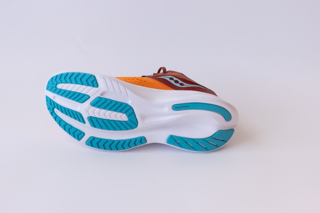À semelhança da sola, também a meia sola é em tudo semelhante à geração anterior. É composta pelo material proprietario da Saucony, a PWRRUN que há primeira sensação pode parecer algo amorfo, especialmente comparado com os inumero modelos que hoje em dia com placas de carbono, nylon entre outros.