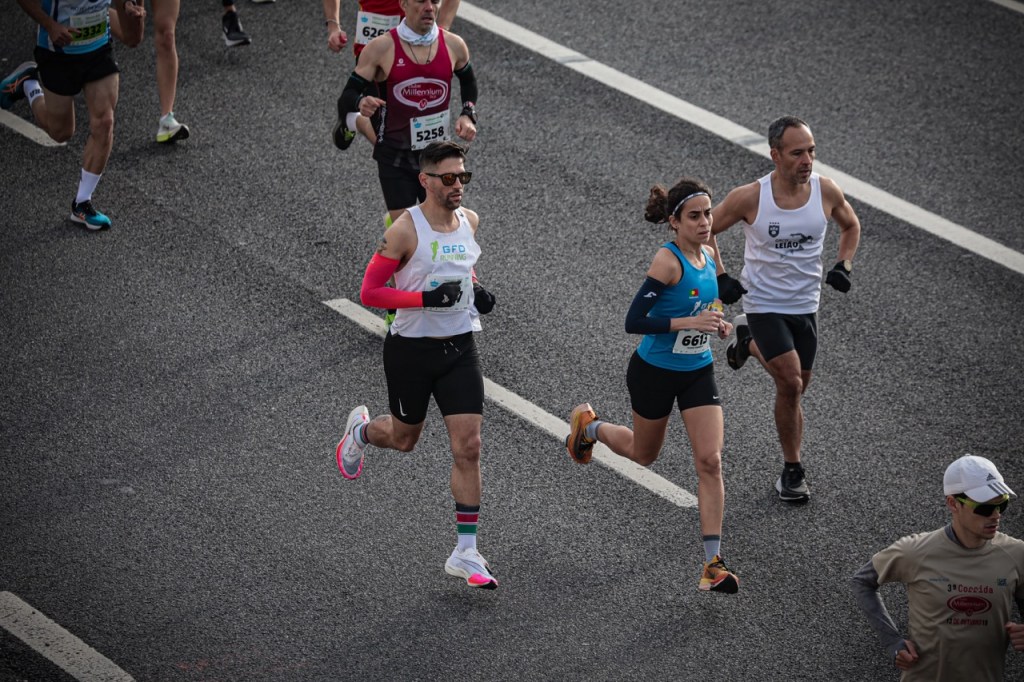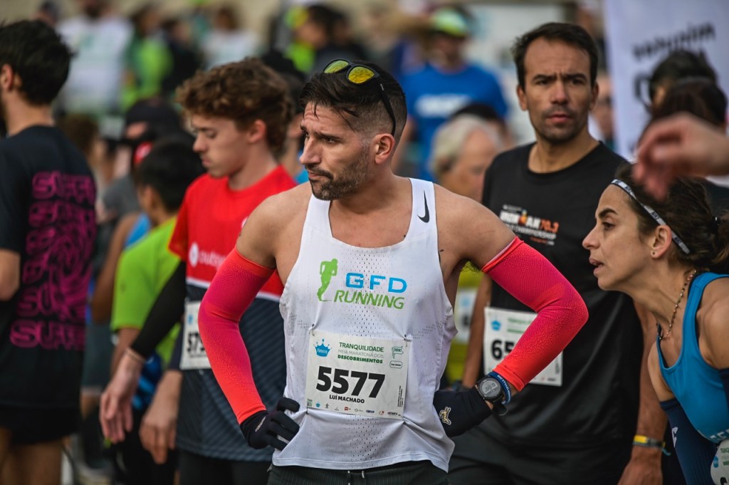A manhã da prova revelou-se bastante fria e algo ventosa (acabei por correr de singlet mas com manguitos e luvas…) e começou cedo. O ponto de encontro em Belém ficou marcado para as 8:30, sendo que a prova dos 10Kms estava agendada para as 9:20. Procurei fazer um aquecimento mais longo que o normal (devido ao frio) e durante o aquecimento acabei por combinar com a Joana Fonseca (também do GFD Running e que viria a ganhar a prova no sector feminino) que podíamos tentar ir os dois juntos até final.